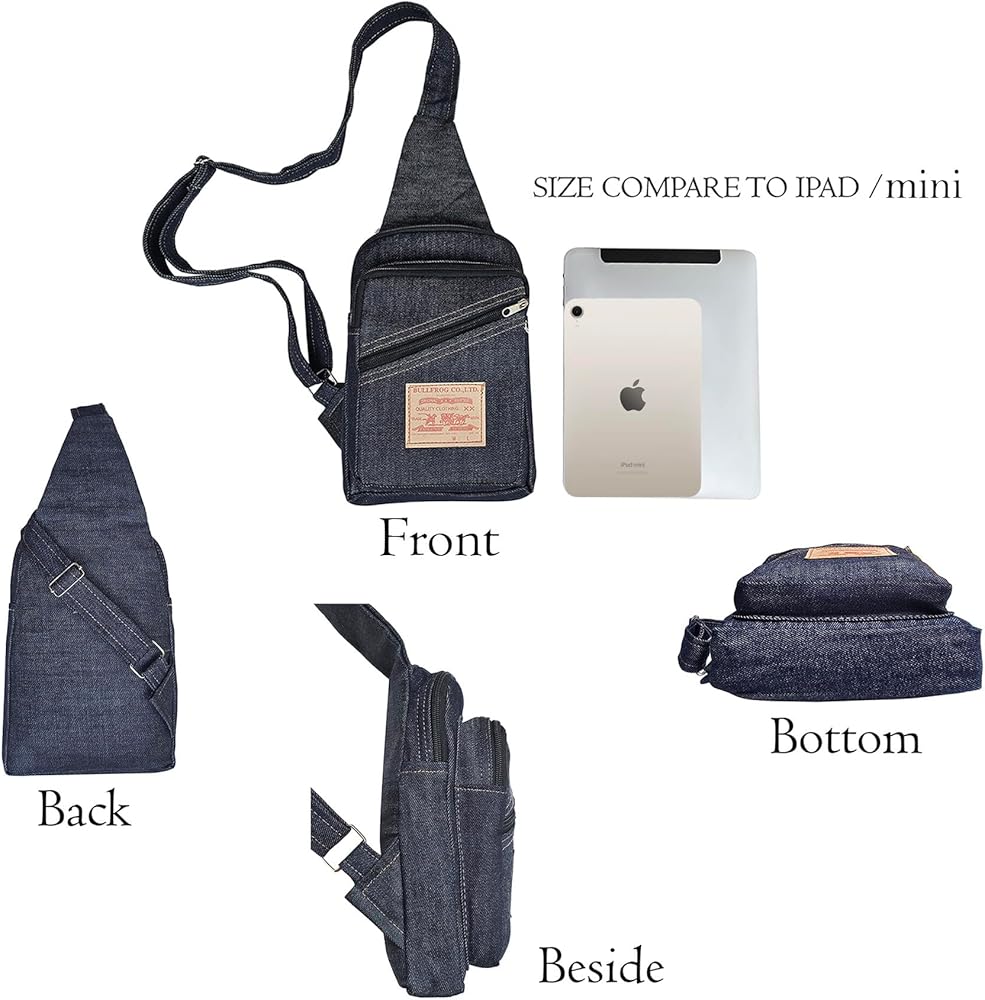 Versatile Design: This stylish dark denim sling bag combines a casual, vintage-inspired look with a practical crossbody design. Featuring multiple zippered compartments for organized storage and an adjustable strap for a comfortable fit, it's perfect for everyday use, travel, or outdoor activities. The rugged yet stylish dark blue denim fabric makes it an ideal hands-free carrying option for both men and women.