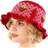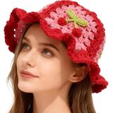 Color#Aa1 Cherry Yellow Crochet Bucket Hats for Women