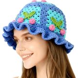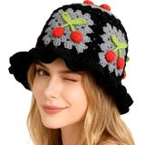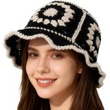 Busnos Crochet Bucket Hats for Women Handmade Floral Hat Cute Foldable Knitted Hats for Women