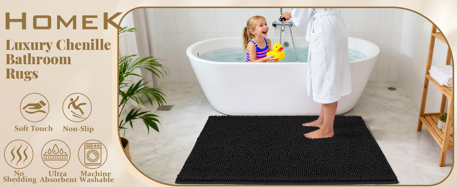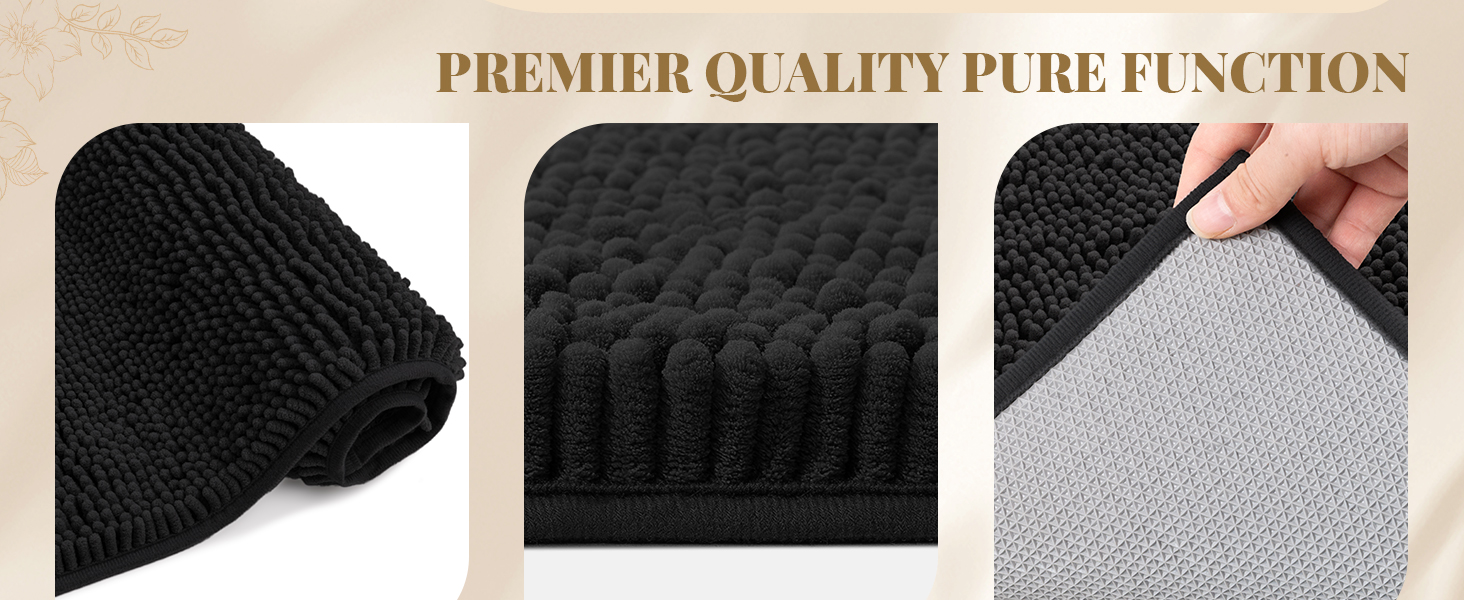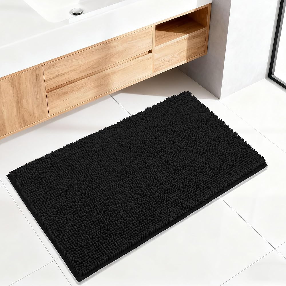 Super Absorbent & Quick Drying: Frustrated with wet floors and musty odors? Our dense chenille bath mats absorb 5X faster, rapidly absorbing moisture to keep your bathroom floor dry and clean. The absorbent and quick-drying fabric helps keep the bath rug fresh, reducing moisture that can lead to odors. Its vertical air-channel chenille fibers ensure rapid and complete dryness.