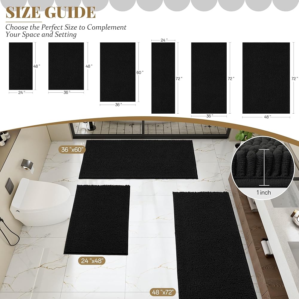 Versatile Use: This oversized bath rug adds a cozy and stylish touch. Designed for versatile use in bathrooms (at the tub, shower, or sink), bedrooms, kitchen, hallway, entrance or entryways, large bathroom rugs adds warmth and style. Available in multiple large sizes and decor-matching colors to seamlessly fit your master bathroom, kids' bath, vacation home, or guest room.