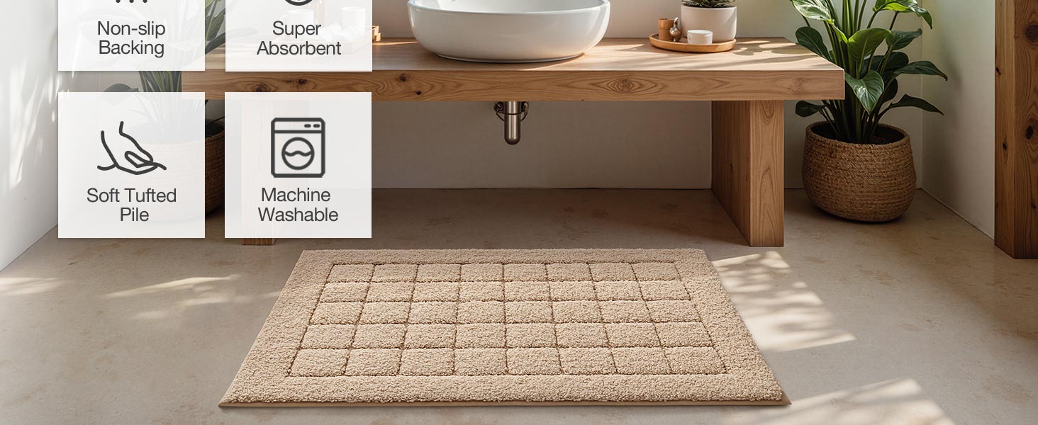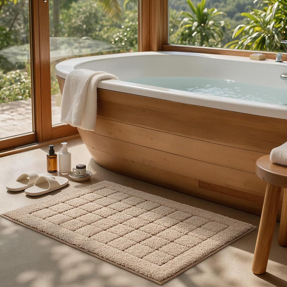 Non-Slip & Secure: Designed with a durable non-slip rubber backing, this rug firmly grips the floor, staying securely in place even in high-moisture areas. Enjoy stable, slip-free comfort every time you step out of the shower or bath