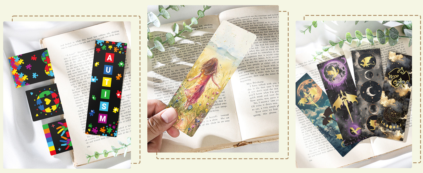 Dragon Design: This fourth bookmarks set is influenced by fantasy dragon, featuring designs of dragon soaring through the sky. Rich in imaginative details, each bookmark captures the spirits of adventures and magic, making them a perfect matches for readers who loves fantasy novels, and immersive reading experiences