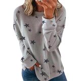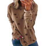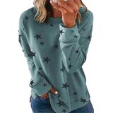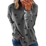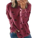 Women Casual Long Sleeve Sweatshirt,Crew Neck Loose Autumn Tops,Slim Fit Star Printed Lightweight Pullover,Side Split Spring Fall Soft Blouse,Workout Plus Size Sweatshirt