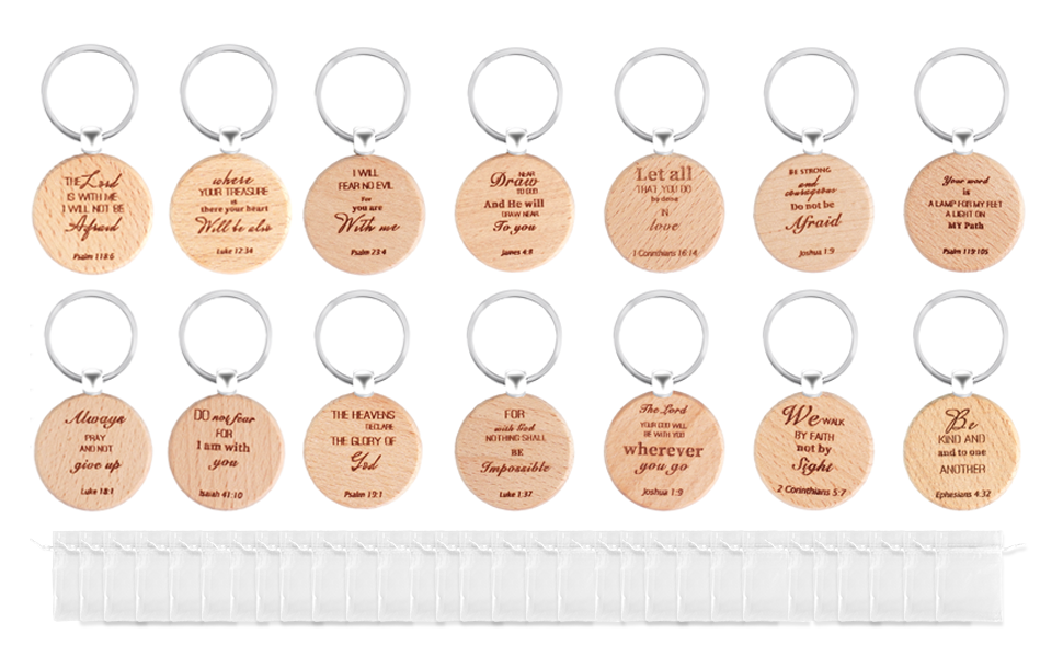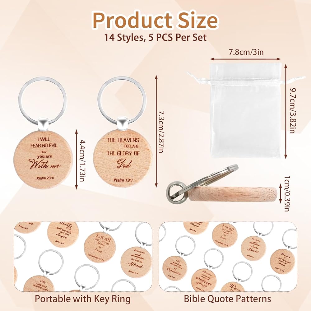 Package Includes:Each package contains 70 pieces of christian keychain with 70 drawstring bags, measuring about 1.73 inches in diameter, coming in 14 styles and 5 pieces for each style, this bulk set pack is enough to meet your needs, ideal for group events or using as gifts