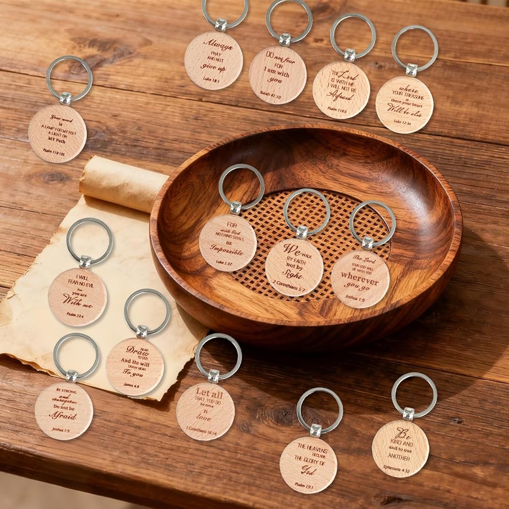 Engraved with Bible Verse:Each christian keychain is engraved with an inspiring bible verse, making it a nice reminder of faith and motivation, the verses are engraved in beautiful fonts that make them stand out, adding more christian keychain value and meaning