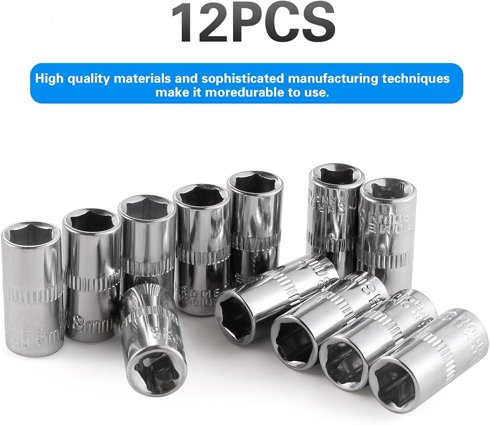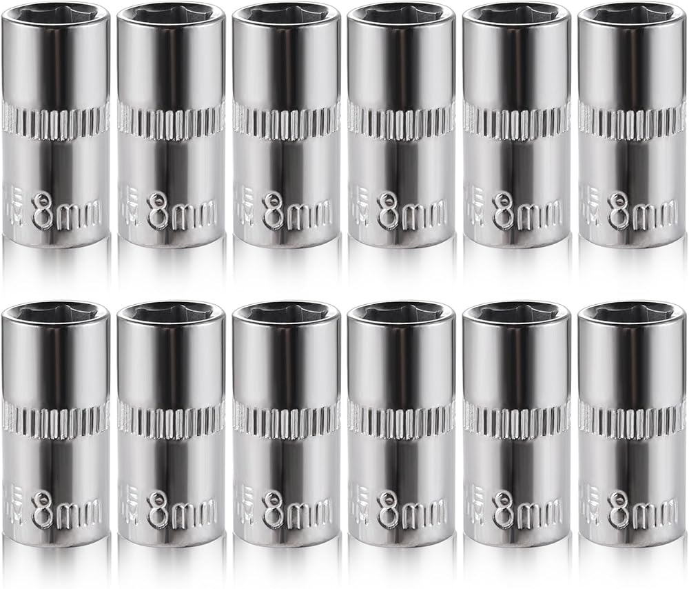 [12pcs] Durable 8mm Socket, 1/4 socket set,Shallow Socket 1/4 Inch Drive 8mm 6 Point, CORROSION RESISTANCE