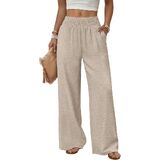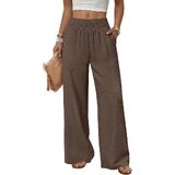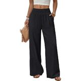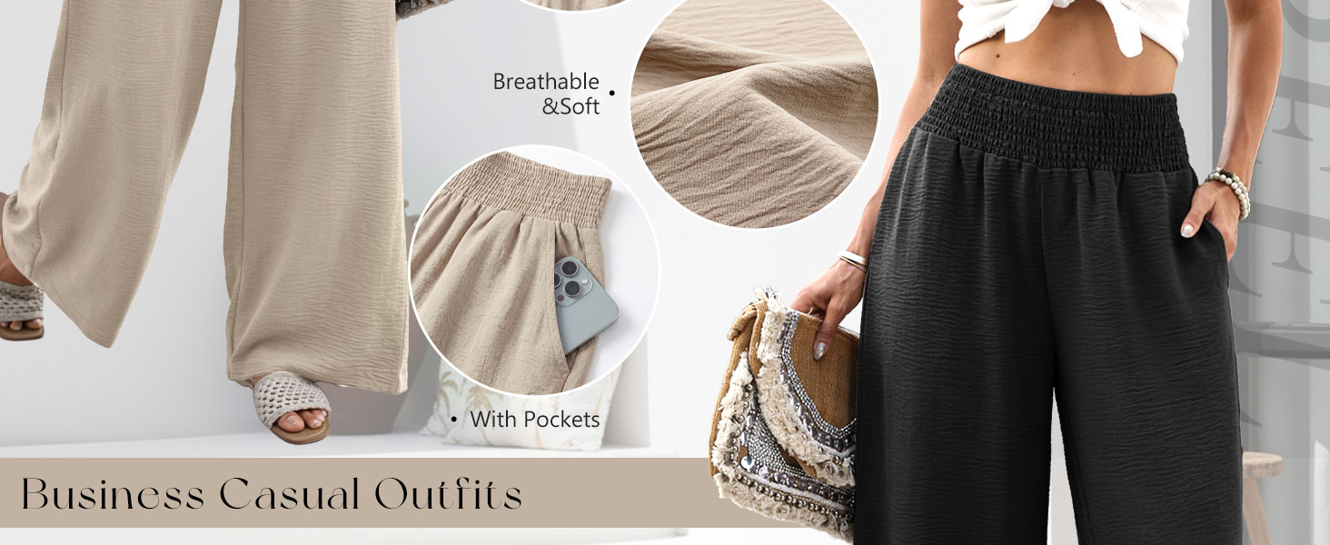 【Material】: This wide leg pants is made of 100% Polyester, which is skin-friendly, soft handing and breathable, allows for unrestricted movement, making them a popular choice for both casual and sporty lifestyles