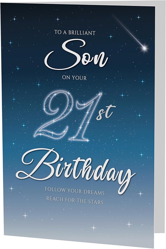21st Birthday Card for Son – Starry Night A5 Greeting Card with Printed Verse – Premium UK Made Milestone Card