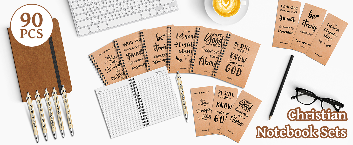Christian Gift Set: You will receive 30 sets of christian notebooks, christian pens and bookmarks printed with Bible verses. Each set includes 6 different designs of notebooks, 6 styles of pens, and 6 styles of bookmarks, totaling 90 pieces (30 small notebooks, 30 christian pens, and 30 bookmarks). Perfect for daily use and replacement.