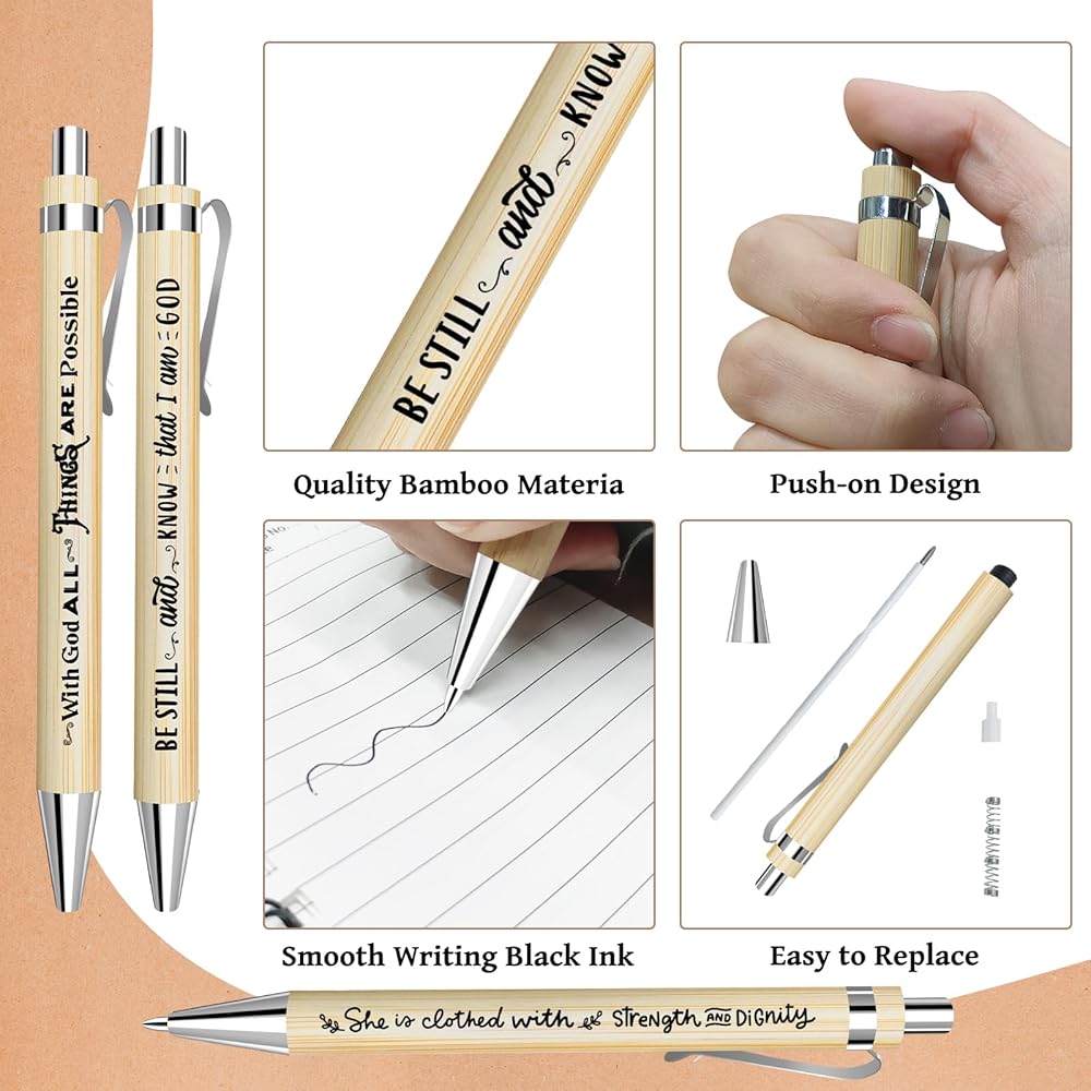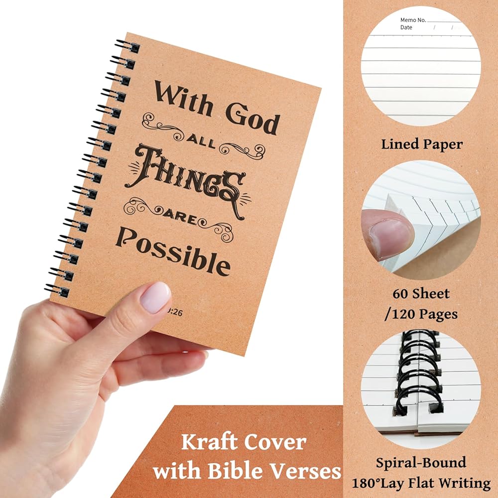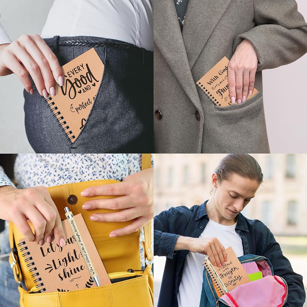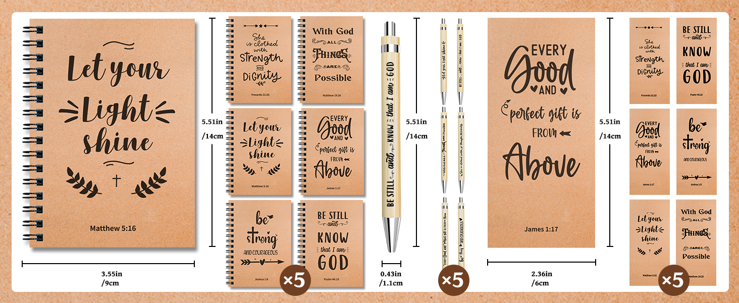 Premium Materials: This spiral-bound bible notebook features a kraft paper cover and ruled paper. The christian pen is crafted from high-quality bamboo wood, ensuring safety, durability, and a smooth, comfortable writing experience. The bookmark is made of coated paper, thick and long-lasting.
