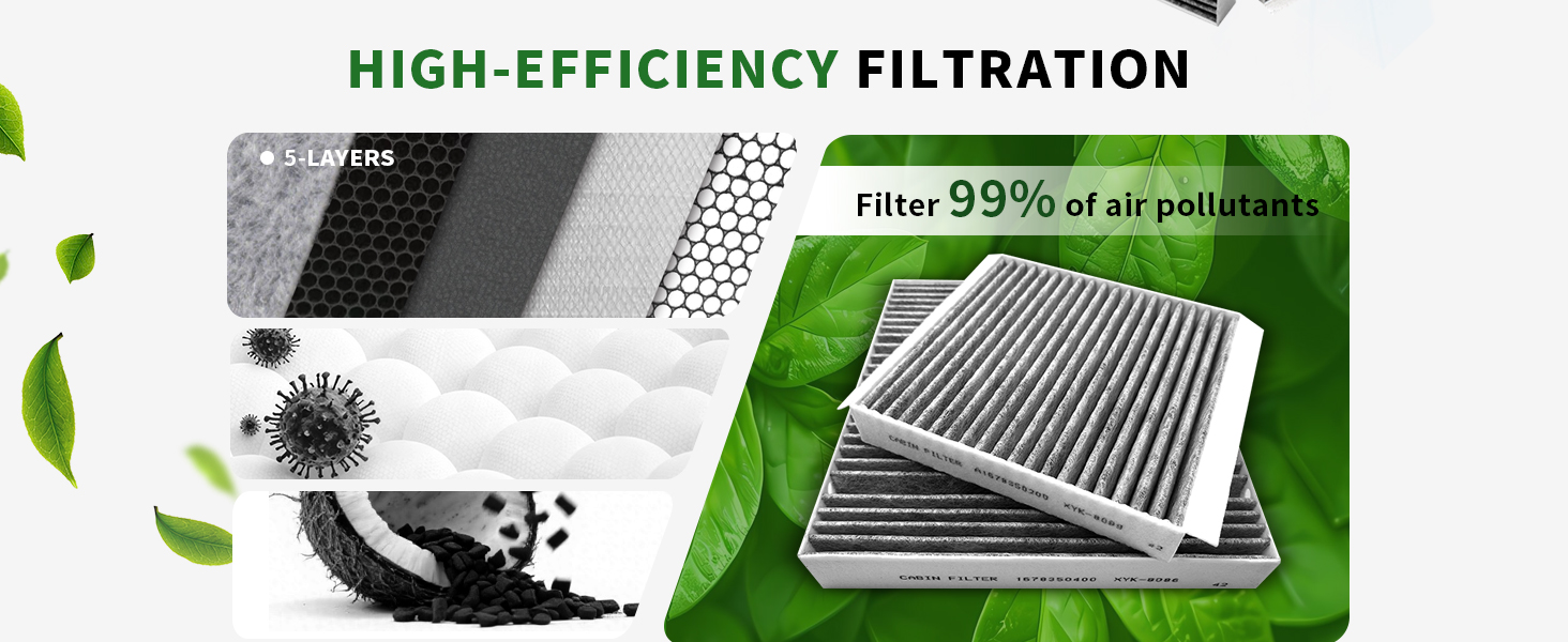 • [SUPERIOR FILTRATION]Uselection Cabin air filter uses high-quality coconut shell activated carbon to absorb odors, ensuring a fresh interior environment for the driver and passengers. The engine filter utilizes high-quality filter media and construction for durability, ensuring long-term engine performance.