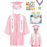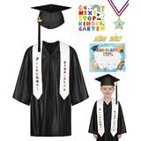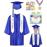 8Pcs Graduation Set: this kindergarten graduation cap and gown set includes everything your child needs for DIY: 1 x cap, 1 x gown, 1 x tassel with removable 2026 year charm, 1 x 2027 year charm (designed for replacement and reuse next year), 1 x white stole, 1 x graduation certificate, 1 x graduation stickers, 1 x honor medal