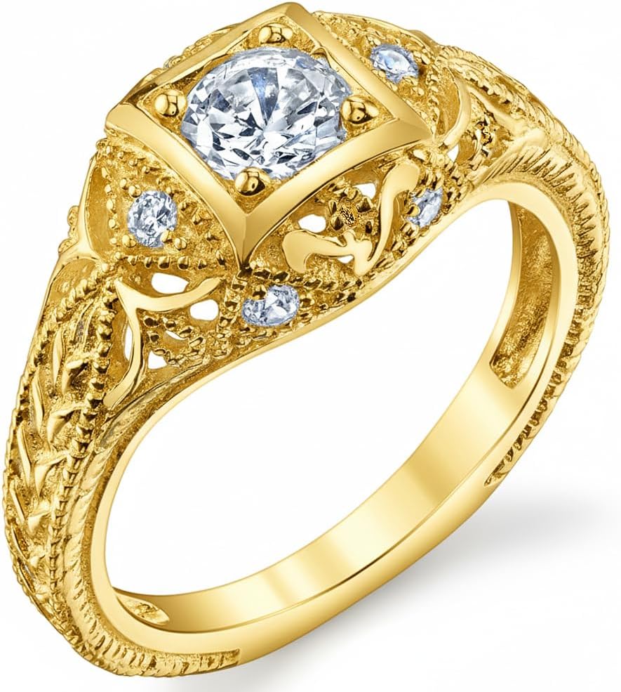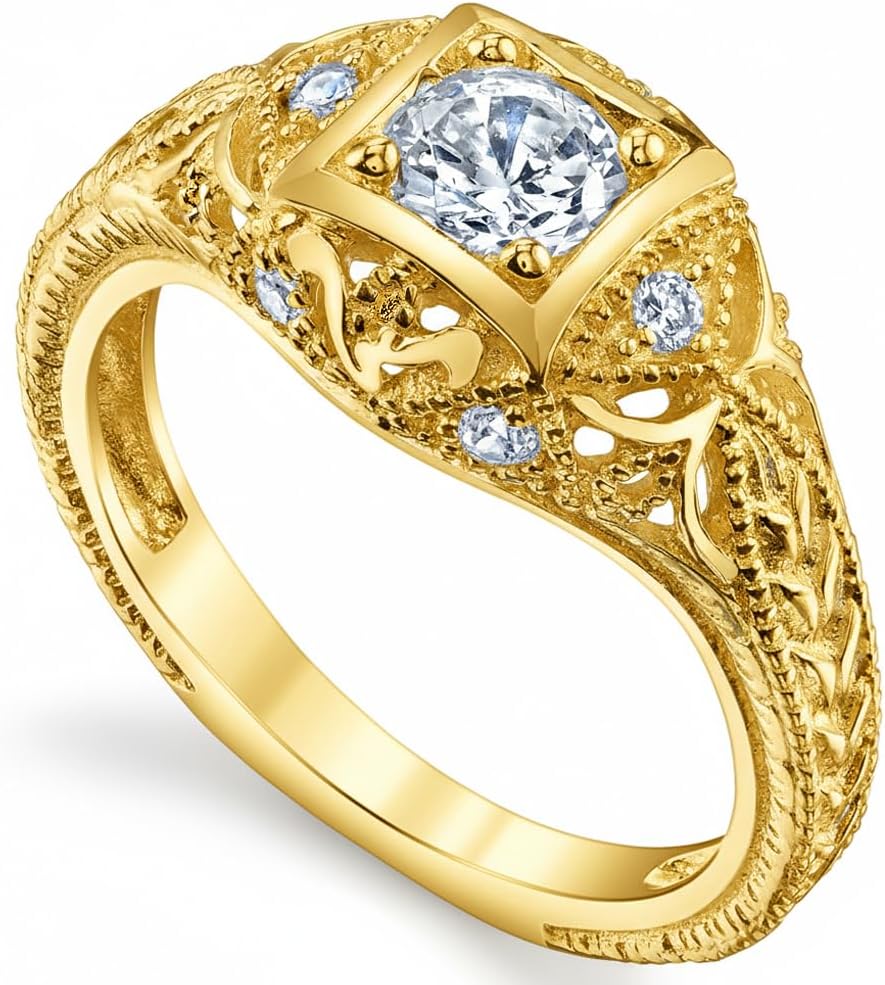 Intricate Vintage Carved Design: This heirloom-quality ring boasts exquisite hand-carved filigree work and milgrain detailing. The vintage-inspired square setting creates a bold, antique silhouette that stands out from standard modern bands.