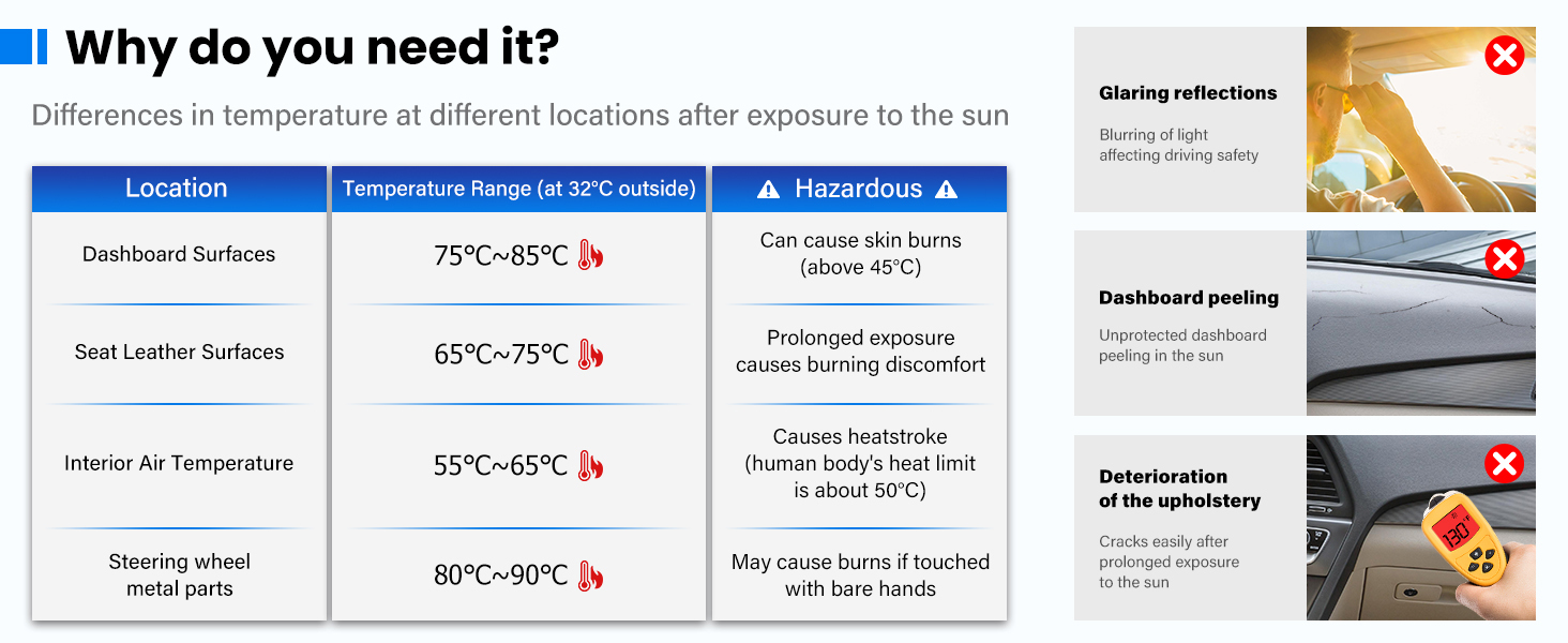 Anti-Glare & UV Protection:The dash cover mat can blocks 99% of harmful UV rays to prevent dashboard fading, cracking and screen damage. The glare-free surface ensures clear visibility, reducing eye strain during sunny commutes