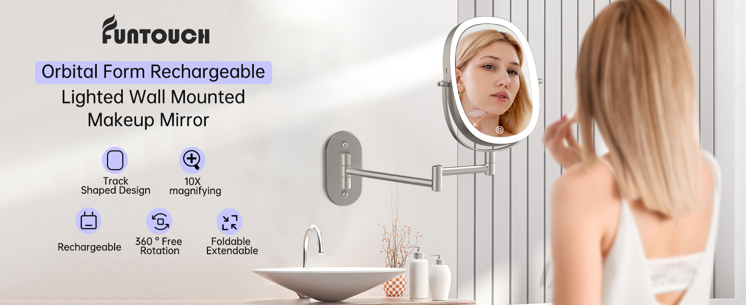 【RECHARGEABLE WALL MOUNTED MIRROR】This lighted makeup mirror with magnification has a 2000mAh rechargeable lithium battery. large capacity lithium battery provides longer service life, so you don't need to replace the battery frequently. Type-C cable is included (charger is not included).