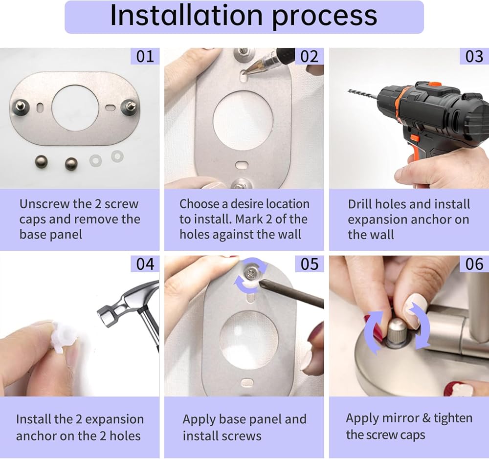 【EASY TO INSTALL 】This wall mounted makeup mirror is very simple to install, Please check that all accessories are complete before installation, the base can be installed to any wall with simple screws (The bathroom vanity mirror may not be fully charged when leaving the factory, please fully charge it before the first use after installation).