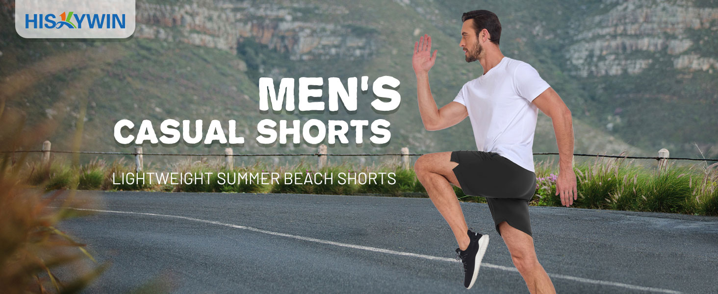 Wide elastic waistband: Men's thin active shorts with Soft Elastic waistband/built-in adjustable drawstring for custom fit, flatlock seams reduce chafe for additional comfort and ease of movement