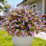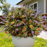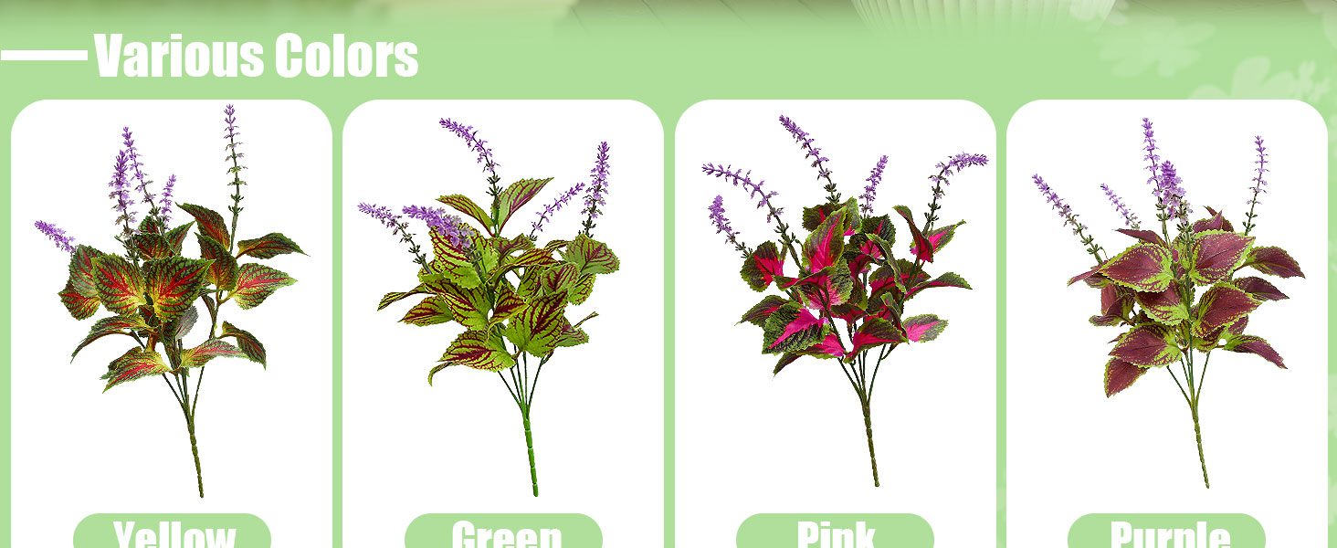 Includes 12 bundles of artificial coleus rainbow, 3D printing of leave with clear and simulated patterns, artificial plants made of high-quality silk fabric, with bright colors and complex leaf textures, imitating real leaves, paired with purple flowers, fake plants making your indoor and outdoor more elegant and beautiful