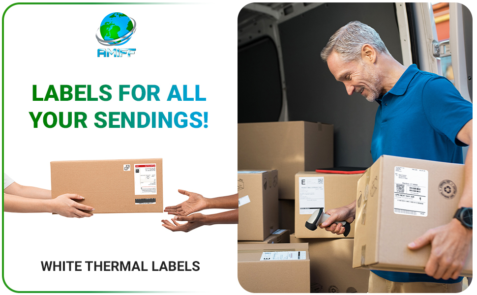 Universal Labels. Shipping label thermal is great for business shipping needs, organizational tasks, product labeling, and inventory management. Shipping labels can be attached to cardboard, various boxes, and envelopes.