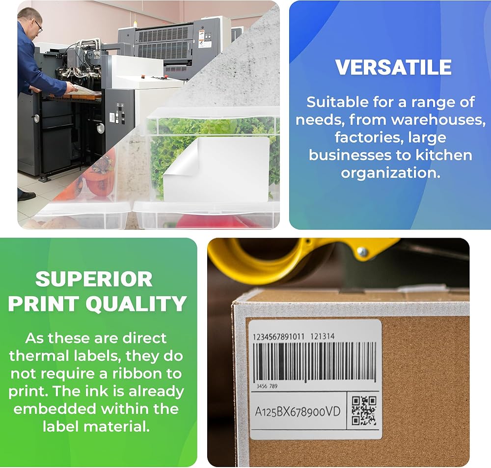 Compatible and Reliable. Thermal printer label paper is compatible with Bixolon, Zebra, Datamax, Sato, Intermec, Printronix, Citizen, TSC and Honeywell printers. Shipping labels rolls are resistant to moisture, humidity, oils and dirt.