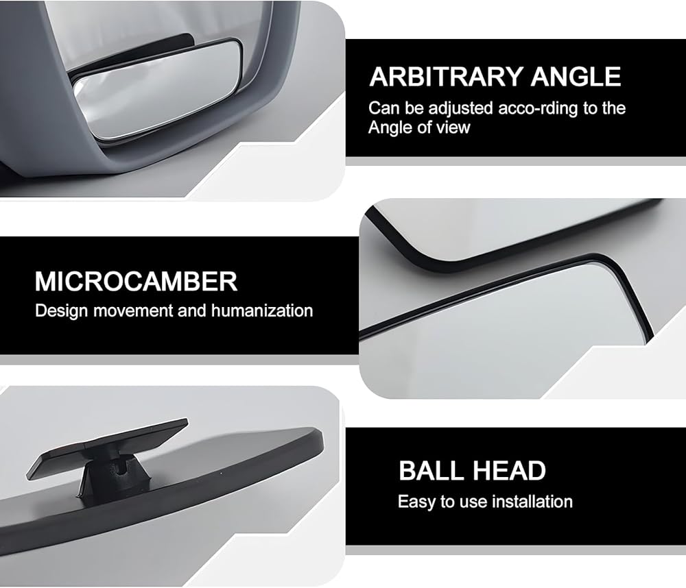 Adjustable Wide Angle View: These framed rectangular blind spot mirrors offer maximum flexibility. Easily customize angles for optimal view. Wide-angle design expands surrounding visibility, reducing collision risks during lane changes or reversing.