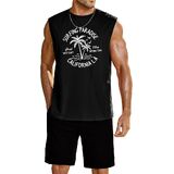 Introducing the VOGSTART Men‘s 2-Piece Beach Set, a stylish designer summer ensemble that pairs a vibrant graphic tank with textured shorts. This coordinated set features a classic tropical palm tree print, perfect for creating a trendy and fun vacation-ready look from the beach to casual outings.