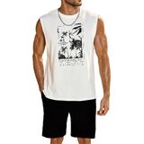 The outfit features a muscle-fit tank top with a clean crewneck and relaxed-fit shorts with an adjustable drawstring waist. The set offers a cozy and chill regular fit, designed for easy movement and effortless style.