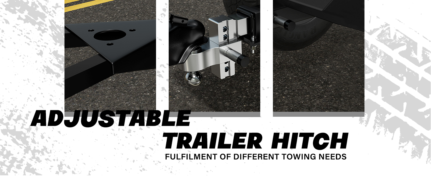 Quick & Easy Adjustment:Adjustable tow hitch provides 4" of rise and drop height and easily adjusts ball height in 1" increments to accommodate trailers of varying heights