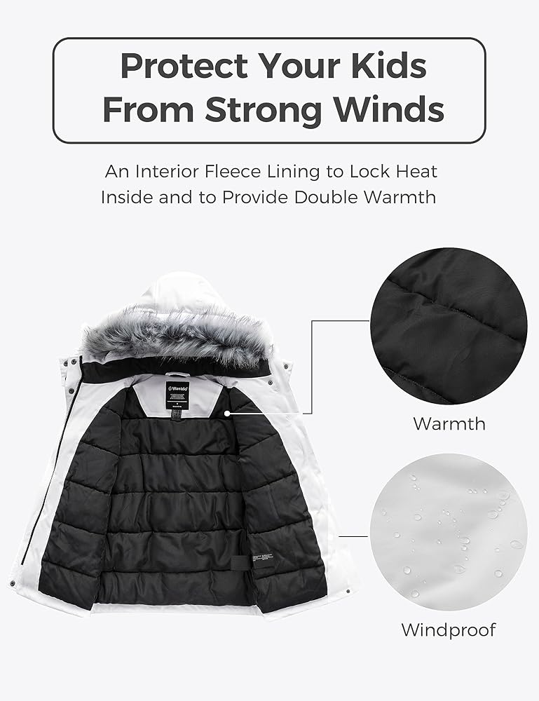 Keep Cold & Snow Out - The winter outerwear jacket for kid girls is made with elastic cuffs that prevent any moisture from entering, keeping your child dry and happy.