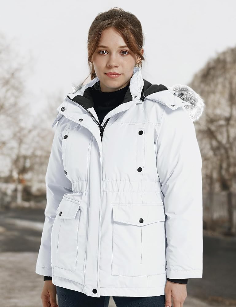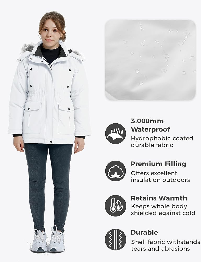 Stretchy Feel on Free Movement - The kid girls' insulated winter jacket is designed for ultimate comfort and flexibility, making it perfect for your active child to move around comfortably and stay cozy.