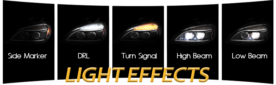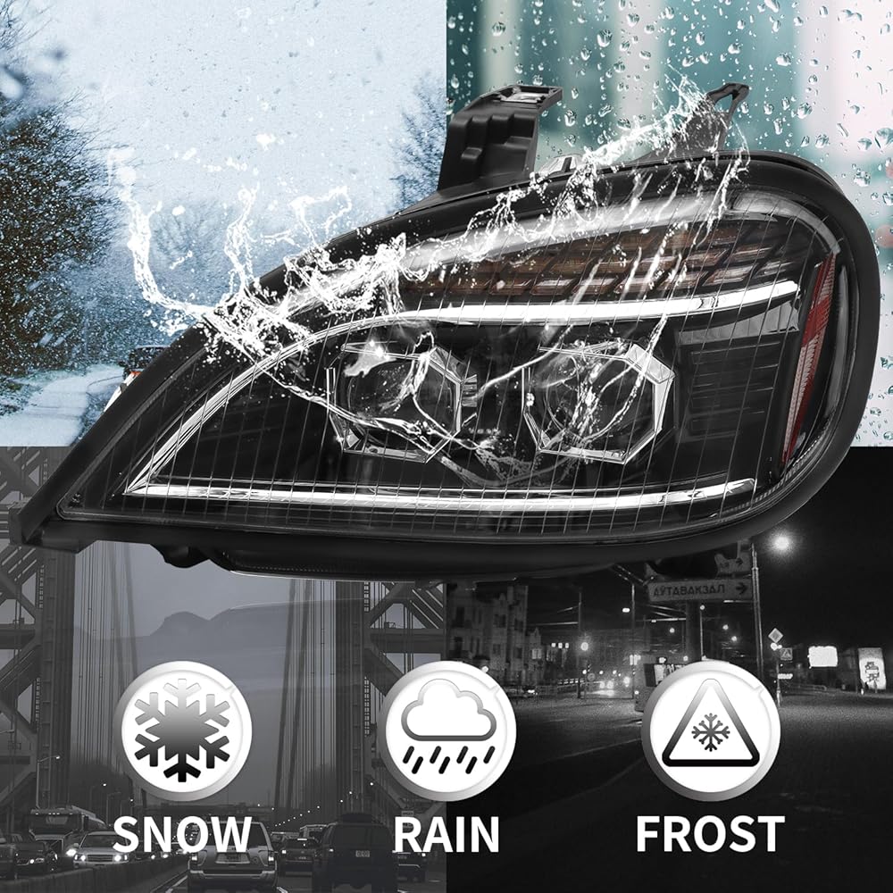 Suitability:LED Headlights Assembly Fit for 2004-2017 Freightliner Columbia. Compatible with LED Type Headlights Models.