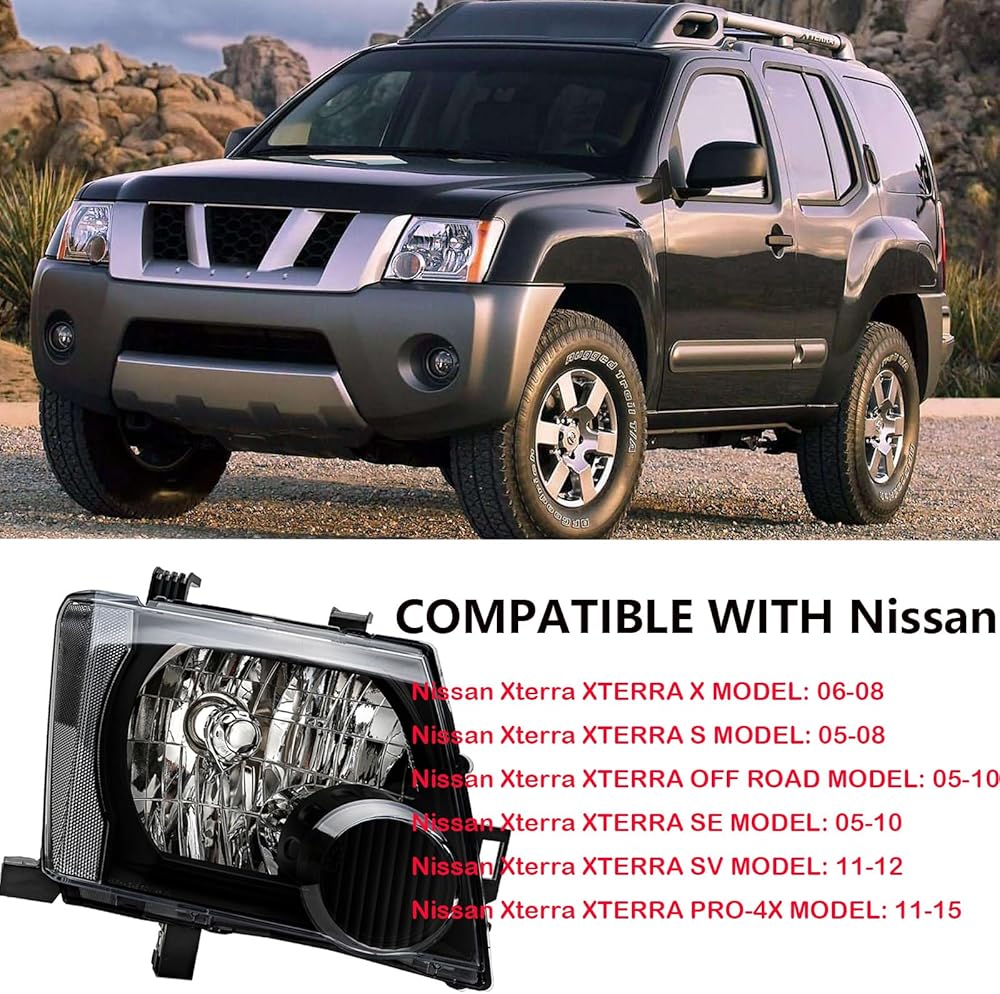 【Fitment】: Made by an ISO certified automotive headlight assemblies manufacturer; compatible with 2005 2006 2007 2008 2009 2010 2011 2012 2013 2014 2015 Nissan Xterra Headlight Assembly.