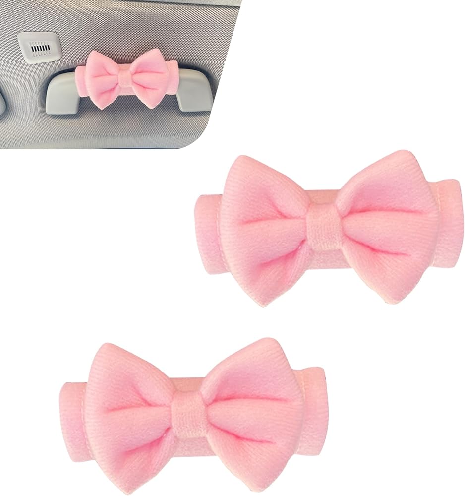 Foelony 2 PCS Car Inside Roof Handle Cover, Cute Bow Soft Anti-Scratch Pull Handle Protector, Universal Auto Interior Decor Accessories for Car SUV RV Truck (Pink)