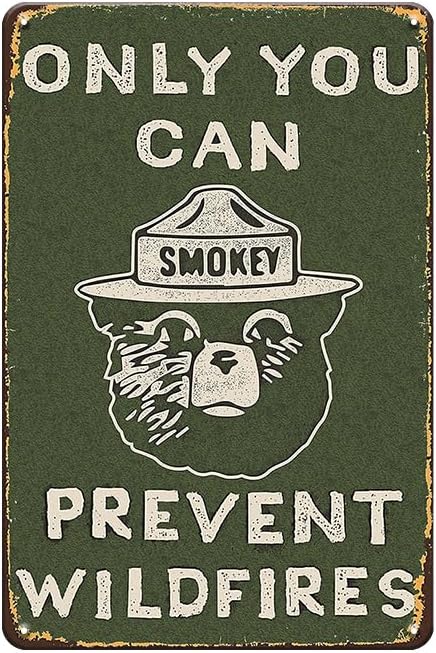 YOYI ART Vintage Metal Sign Smoky the Bear - Only You Can Prevent Wildfires, Funny Retro Tin Sign Sign for Home, Garage, Yard, Outside, Man Cave Wall Deocr Art Accessories, Gifts for men, 8 x 12 Inch