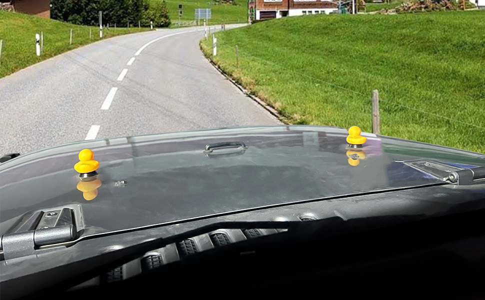 Function: The hood bumper stop for Jeep Wrangler is designed to provide duck enthusiasts with a new duck display location, keeping your duck in your sight while you drive