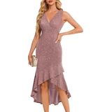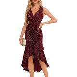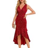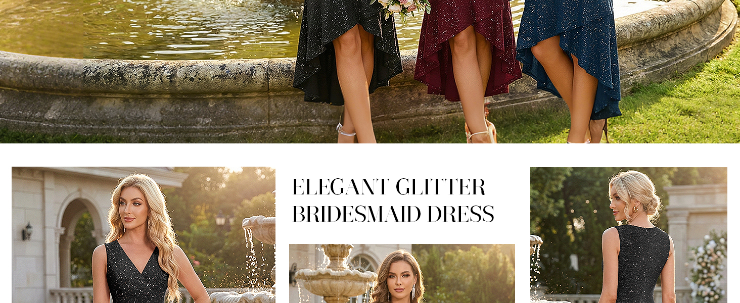 Stunning Sparkle Design: This sequin dress is a showstopper, perfect for wedding guest events, cocktail parties, proms, or holiday celebrations. Glittering sequins reflect light with every step, while the ruffled skirt with a high-low hem adds playful red-carpet flair, making you the center of attention.