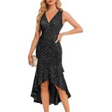 Flattering Silhouette: The deep V-neck elongates your neckline and highlights your collarbone, while the sleeveless design accentuates your shoulders and arms. The tailored cut fits perfectly at key points, while the asymmetrical hem cleverly elongates your legs. Regardless of your height, this dress creates an elegant, feminine silhouette that boosts your confidence.