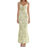Features: Floral maxi dress, long dresses for women, bodycon dresses for women, v neck dress, chest bow tie, slim fit, high waist, slim fit