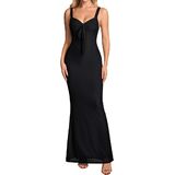 Elegant dress up: Bodycon maxi dress feature a classic v neck, delicate chest bow tie and bodycon design, it perfectly sculpts your silhouette. Pair it with delicate jewelry and sleek heels to create a perfect look, suitable for any formal or semi formal occasion