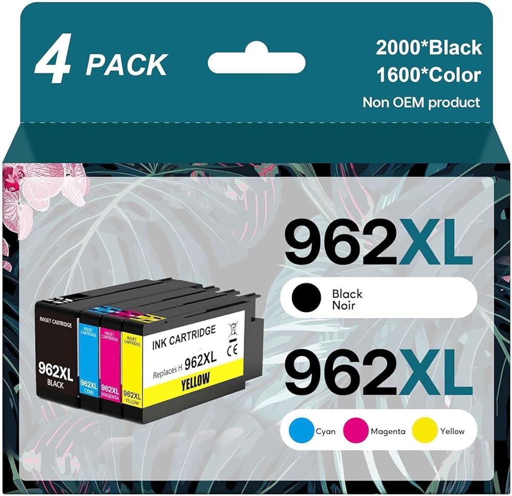 Package Contents: 962xl ink cartridges compatible for hp ink 962xl black and color combo pack ( 1 Black,1 Cyan,1 Magenta,1 Yellow)