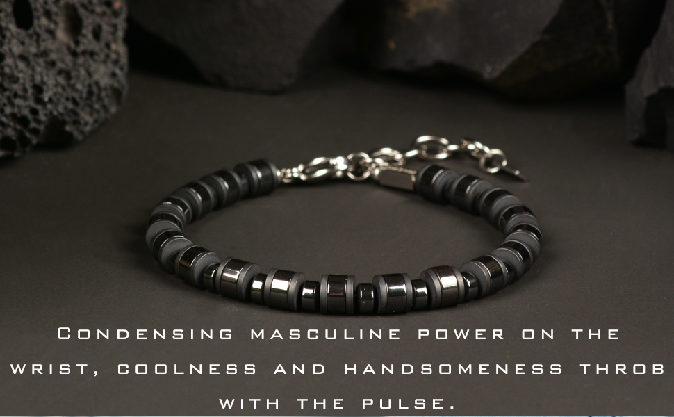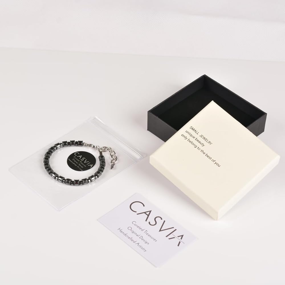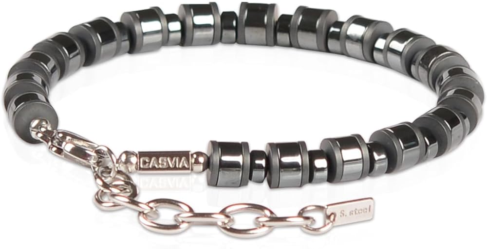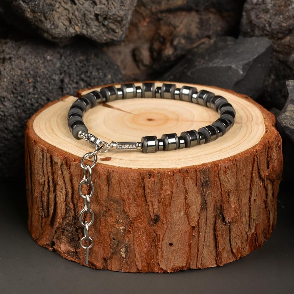 【Original Masterpiece】: CASVIA crafts this men's bracelet with ingenuity. The bracelet features demagnetized hematite flat beads, combined with a thickened stainless - steel extension chain and a large stainless - steel lobster clasp. The overall design is simple yet elegant, with every detail demonstrating the brand's dedication to quality.