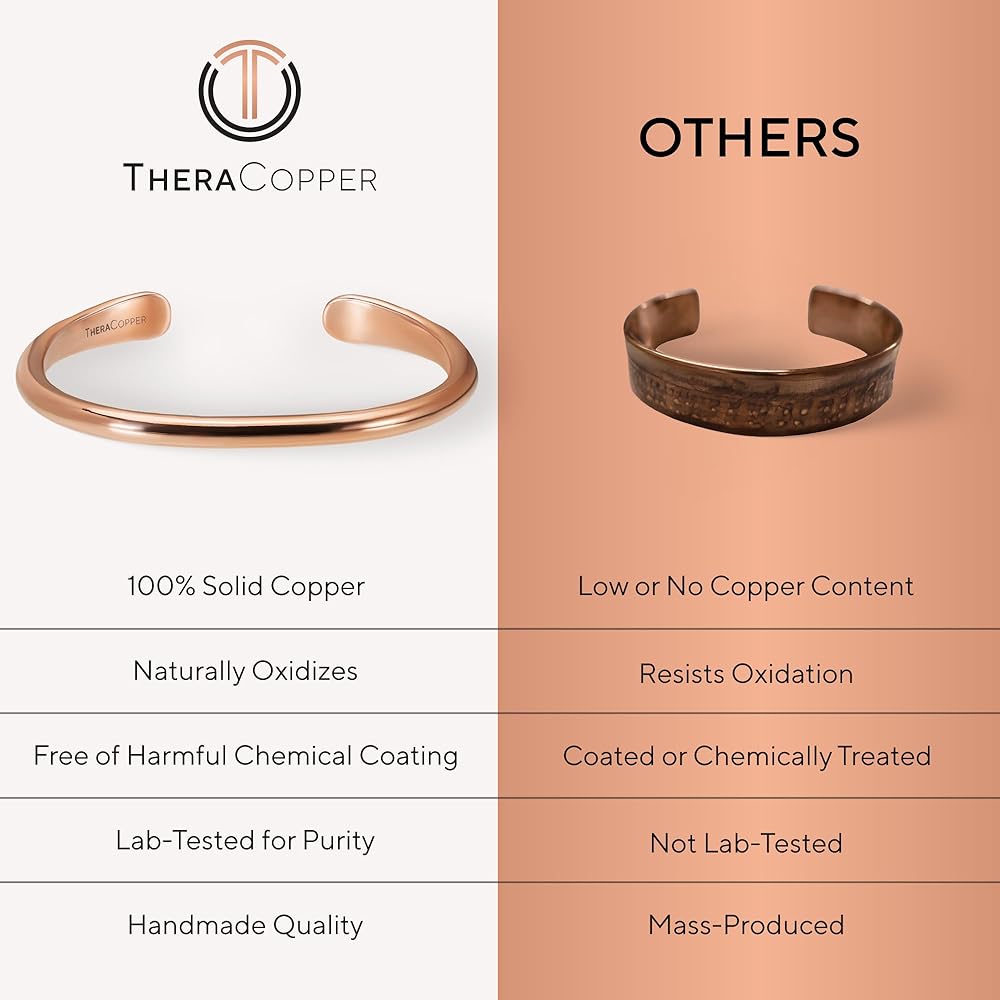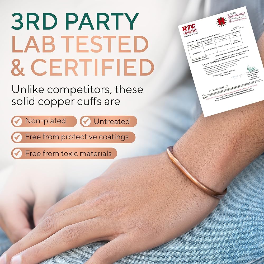 The Purest Copper: Crafted from 100% pure copper, lab-tested and guaranteed free from nickel, lead, cadmium, and PFAS. Unlike cheap plated or alloy alternatives, these bracelets are untreated and authentic, naturally forming a patina over time that can be polished back to brilliance.