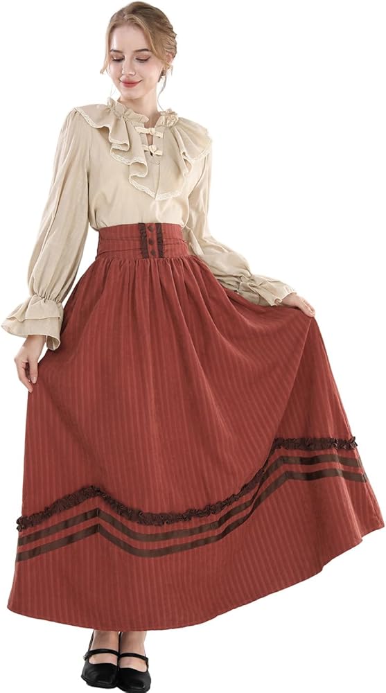 • Fabric - The 1800s Edwardian blouse is made of cotton-linen blend fabric, and the skirt is made of polyester-cotton blend fabric. Comfotable and breathable flowy long maxi skirt. Thick hems and not at all see-through. Smooth to the touch, perfect for multiple occasions.