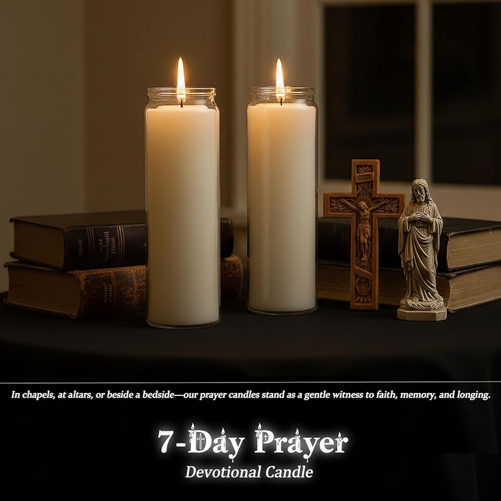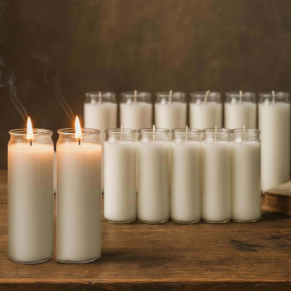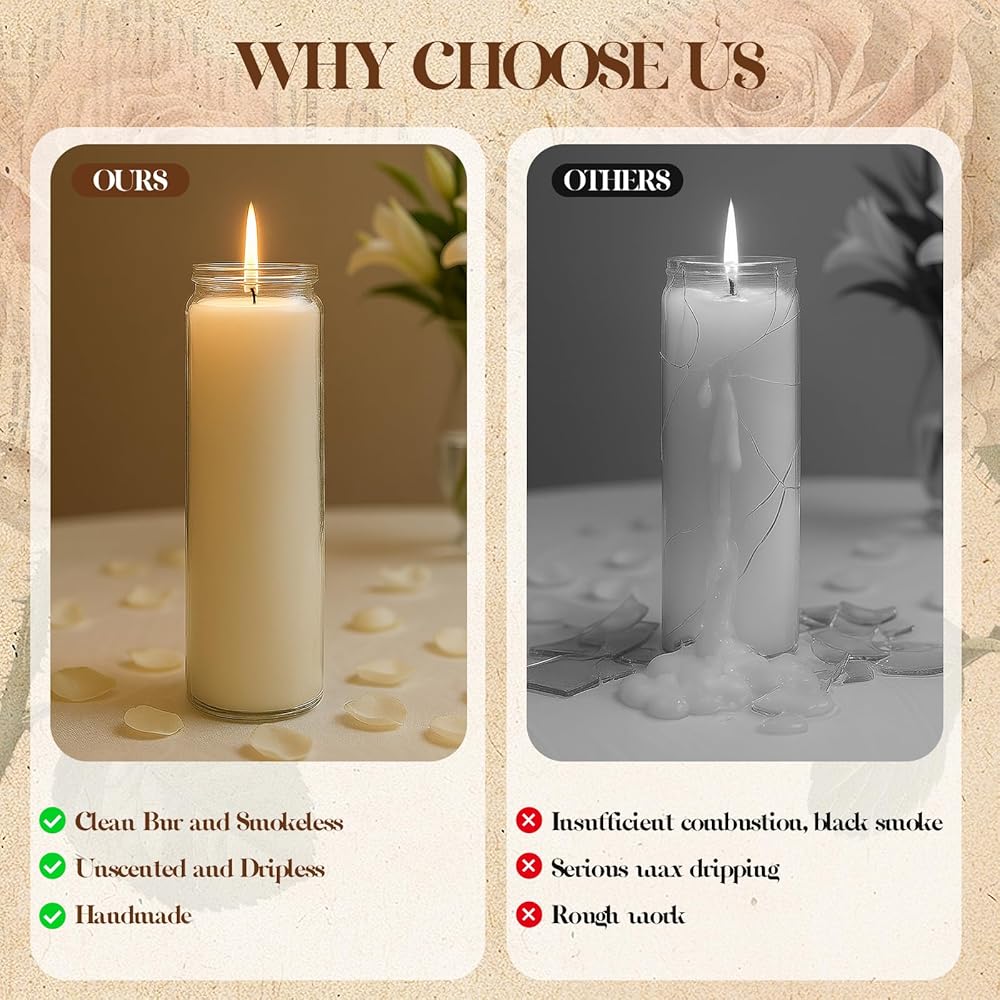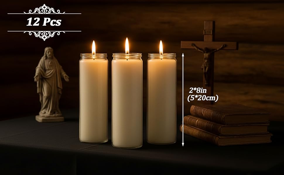 Standard 2x8 Inch Size: Specifically designed to fit most standard 7-day prayer candles securely. With a 2-inch width and 8-inch height, these glass holders provide a stable and perfect fit for your vigil candles, preventing tipping and wax spills.