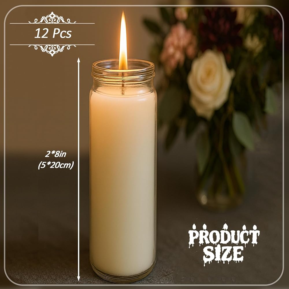 12-Pack of 2x8 Inch White Candles in Glass,7 Day Candle,Unscented Prayer Candle,Suitable for Various Occasions Such as:Memorials,Religious,Catholicism,Churches,Altars,Vigils,etc.