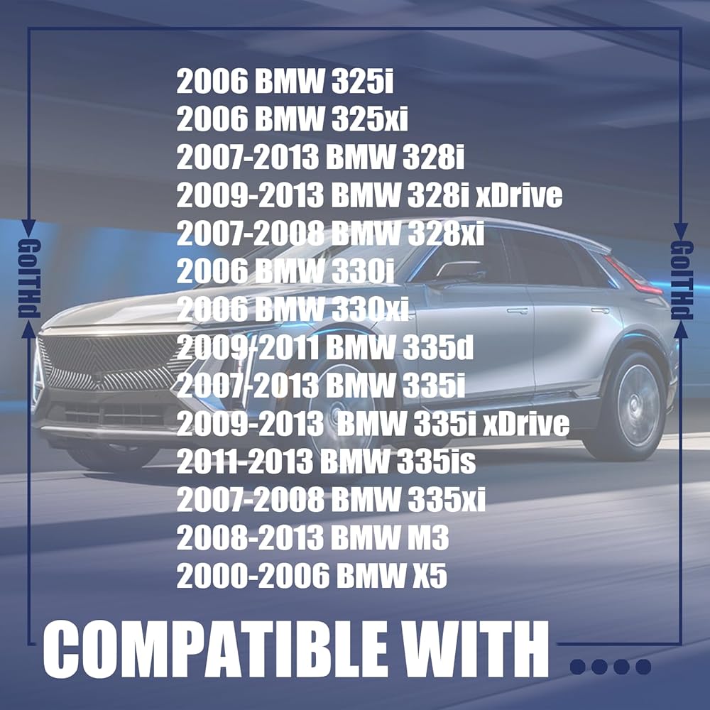 【Compatible with】 - 2006 BMW 325i, 2006 BMW 325xi, 2007-2013 BMW 328i, 2009-2013 BMW 328i xDrive, 2007-2008 BMW 328xi, 2006 BMW 330i, 2006 BMW 330xi, 2009-2011 BMW 335d, 2007-2013 BMW 335i, 2011-2013 BMW 335is, 2007-2008 BMW 335xi, 2008-2013 BMW M3, 2000-2006 BMW X5, 2009-2013 BMW 335ixDrive. Check the part number to confirm the compatibility before purchase