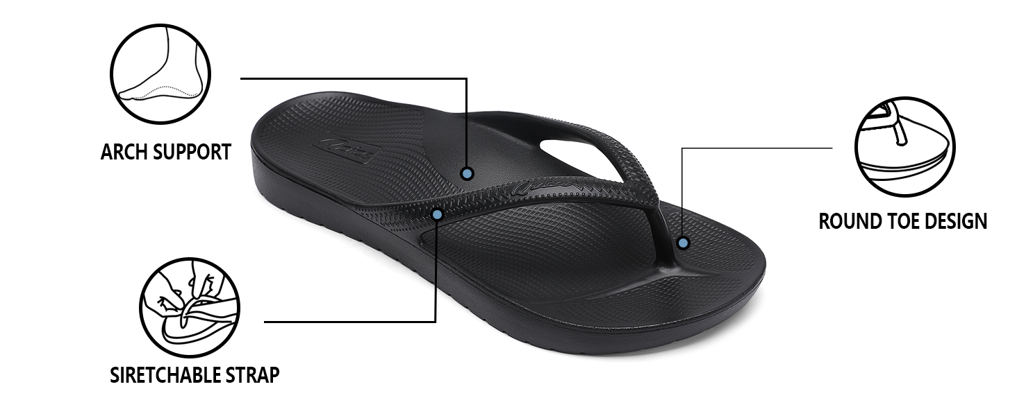 【Arch Support】Women sandals flip flop experience all-day comfort with our arch support to match the curve of your foot. The soft rubber construction offers comfort cushioning, effectively alleviating discomfort, making every step feel supported