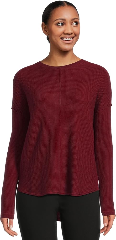 Round Neck Waffle Stitch Drop Shoulder Long Sleeve Sweater