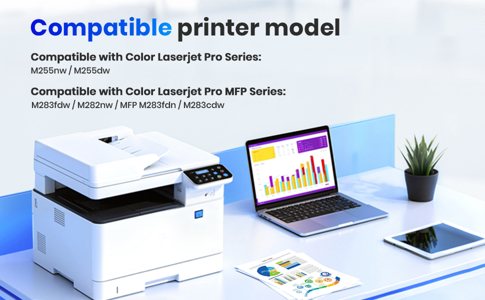 Compatible for HP Printer: Color Laser jet Pro M255dw M255nw, Color MFP M282nw, Color MFP 283fdn Color MFP 283cdw Color MFP 283fdw, work with hp mfp m283fdw toner cartridges